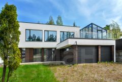 На двух этажах предусмотрены 5 спален, в том числе мастер-спальня с собственной ванной и гардеробной, кухня-гостиная 130 кв.м. с выводом для камина, котельная и хозяйственные комнаты, 4 просторные террасы, зимний сад 20 кв.м.. На балконе напольное покрытие из керамогранита. Количество сан узлов можно выполнить в соответствии с выбранным дизайн-проектом.