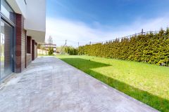 Помимо основной резиденции на участке расположен гостевой дом площадью 72 кв.м со свободной планировкой. На участке сохранены сосны и березы, со стороны дороги участок обрамляют высокие туи.