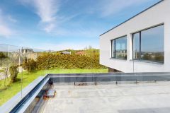 Входная группа выполнена в уникальной системе из профиля Reynaers masterline (Бельгия), высокая входная дверь и панорамное остекление делает зону входа необычной и роскошной. Окна из сверхтонкого профиля Reynaers slimline. Раздвижные системы (выход на террасу из гостиной) премиум класса Reynaers conceptpatio. Все стеклопакеты двухкамерные солнцезащитные с шумоизоляцией и двойным энергосбережением Guardian (США). Ограждение балконов и террас из безопасного сверхпрозрачного стекла (триплекс) Agc cristalvision, Япония.