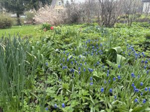 Участок разработан, огорожен, в саду 4 яблони, кустарники, клубника, разные цветы.