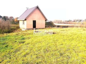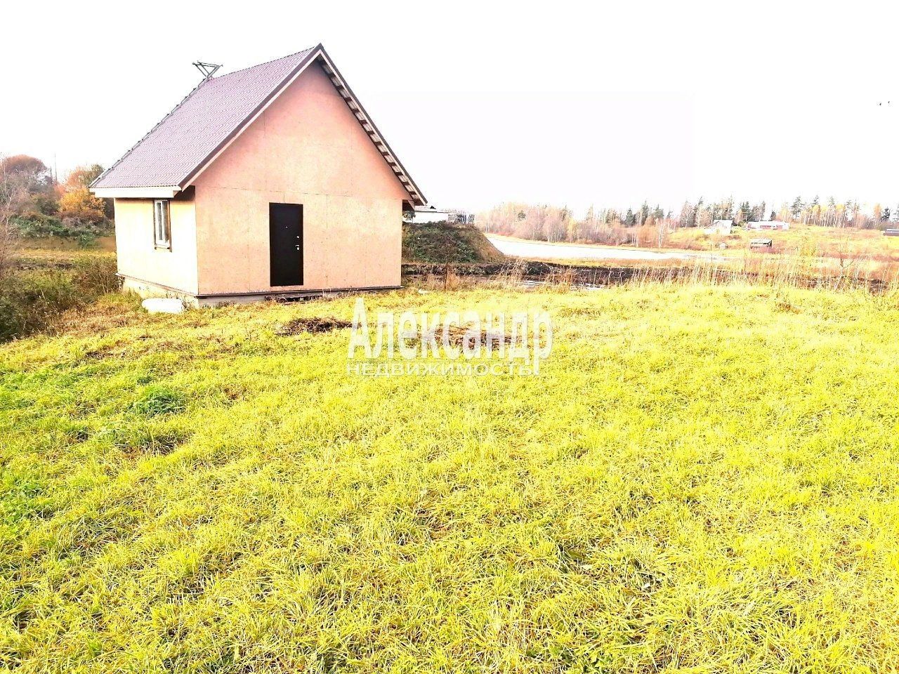 На участке каркасный дом 6/6, готовность 50%, окна - стеклопакеты, кровля - металлошифер, фундамент ленточный, коммуникации подведены: центральный водопровод (договор с Водоканалом, счётчик в колодце); оформлено электричество 15 кВт (договор с Ленэнерго), газовая магистраль проходит вдоль участка, возможно подключение. На участке есть бытовка.