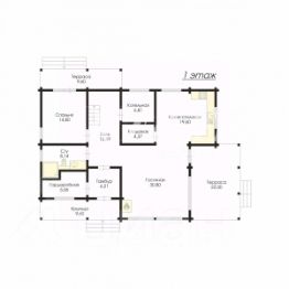 Первый этаж имеет общую площадь 154 м2. Планировкой предусмотрено размещение следующих помещений: