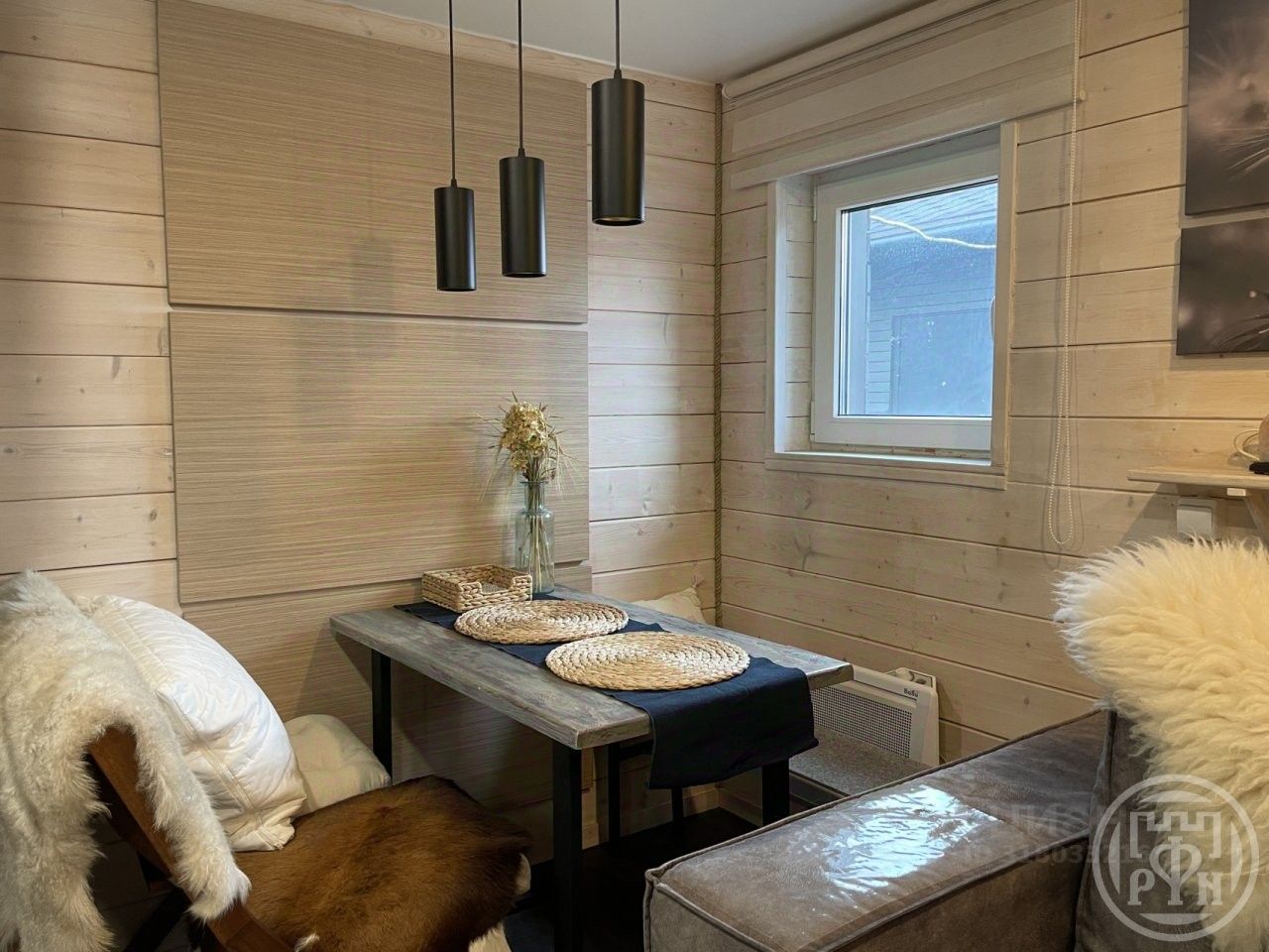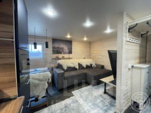 На первом этаже расположена терраса с камином, кухня-гостиная и санузел с теплым полом. На втором этаже находится спальня с мягким освещением. Рабочее место оборудовано всем необходимым для продуктивной работы, а встроенные шкафы обеспечивают удобное хранение вещей.