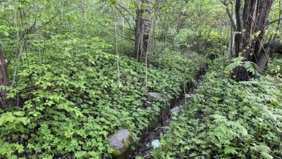 Еще один из положительных моментов: у участка только один сосед, с трех сторон - дороги. С двух сторон есть заезд на участок. Ближе к асфальту есть хорошая канавка. Далее идут земли садоводства.