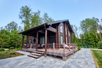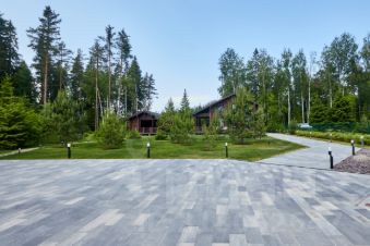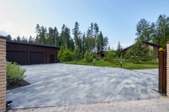 Участок 18,41 соток со своим продуманным ландшафтом, сосны, сделан дренаж, водоразетки, на нем находится дом с террасой, баня с мангальной зоной и террасой, гараж на 2 машины.