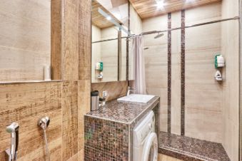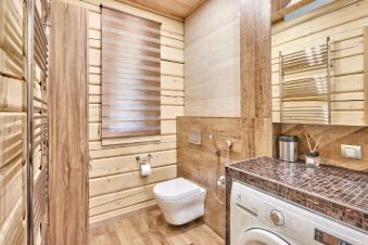 Баня: 36 м2, терраса 30м2, фундамент монолитная железобетонная плита рёбрами вниз, брус 200х230мм лунный профиль, перекрытие деревянные балки, мягкая битумная черепица. Отопление: теплый пол + радиаторы.