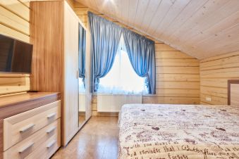 Гараж: 6,5х9.5м, фундамент монолитная железобетонная плита, брус 150х150мм, перекрытие деревянные балки, мягкая битумная черепица. Отопление: инфракрасные обогреватели.