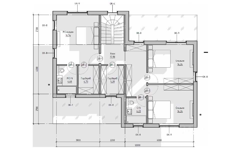 Мастер спальня 14.2 м2 + с/у 5 м2
