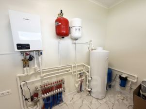 Все коммуникации подключены: электричество, водоснабжение из собственной скважины, локальная канализация. Отопление — от современного электрокотла, водяные тёплые полы обеспечивают равномерный комфорт в любое время года.