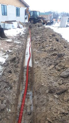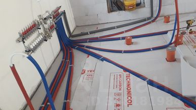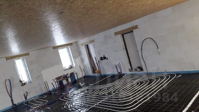 В кухне-гостиной - теплый пол, проложены трубы отопления под радиаторы