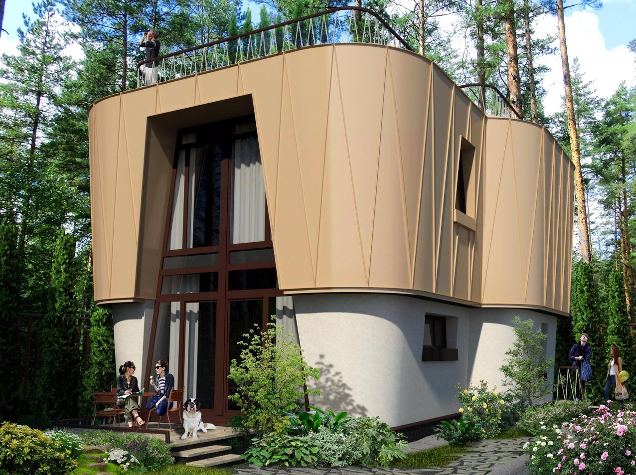 Пространство 1 этажа можно представить гостевой зоной с кухней и гостиной - как единое пространство или как два изолированных помещения. Большое остекление гостевой зоны создает дополнительный комфорт и наполняет ее естественным светом в течение всего дня. Пространство 2 этажа предусмотрено как приватная зона с жилыми комнатами.