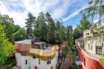 Коттедж (корпус 72) выполнен из керамического кирпича и имеет красивый вид на лесопарк с террасы на крыше. На участке сохранены деревья и почвенный покров. Участок небольшой, но очень живописный, песчаный, находится на третьей дюне от Финского залива.