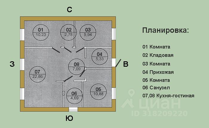 Условия проживания — как в городской квартире! Отличная альтернатива квартиры в г. Сосновый бор и Усть-Луга. Участок 12 соток имеет статус ИЖС, расположен обособленно, соседей нет и не предвидится. Расстояние от КАД СПб 57 км по Гостилицкому шоссе, удобный подъезд с трассы к дому. Ровный, сухой, без перепадов, земля суглинок, имеет правильную прямоугольную форму. На нем расположены бытовка (бывший строительный вагончик) и парник из поликарбоната 4 х 2,5 м. Из плодовых на участке посажены яблони, груша, черешня, красная и черная смородина, крыжовник, жимолость. Из декоративных туя, ель, каштан, кедровый стланик. Удобно организован полив: вывод воды для шланга из скважины и еврокуб для сбора дождевой воды. Дом стоит на цементной, утеплённой пеноплексом 100 мм. плите с дополнительной стяжкой, за счет чего полы очень теплые. Стены из пеноблоков 400 мм. Внешняя отделка — штукатурка. Крыша — ондулин с утеплением ППУ 150 мм. с влаго- и пароизоляцией. Окна — двухцветные стеклопакеты фирмы REHAU. Вся внутренняя отделка выполнена из качественных современных материалов в выдержанной цветовой гамме. Септик из 3 уровней, что позволяет существенно сократить частоту его откачки. Скважина глубиной 23 м, вода питьевая, подача в дом осуществляется через двухуровневую систему фильтрации с греющим кабелем воизбежании замерзания в сильно минусовые температуры. Электричество 15 кВт. с двумя дополнительными опорами на участке 220В и 380В для индукционной плиты. Отопление — надежные электрические конвектора с термодатчиками фирмы NOBO. С целью шумоизоляции расположение комнат продумано так, чтобы они не имели общих стен. Комнаты 01 и 03 разделены кладовой, комнаты 03 и 05 разделены прихожей. С северной стороны дома нет окон для лучшего сохранения тепла в холодное время года. Самое большое помещение в доме это кухня-гостиная 30 м², на плане 07 + 08. Высокий сводчатый потолок частично отделан вагонкой. Очень просторная и светлая, имеет 2 окна, выходящих на запад. Три изолированные спальни, на плане 01, 03 и 05, с высокими сводчатыми потолками. Санузел совмещенный, площадью 4,69 м², на плане 06. Очень теплый и светлый, имеет окно, выходящее на юг, что очень удобно для экономии электроэнергии в светлое время суток, с высоким прямым потолком. Вместительная кладовка площадью 2,78 м², на плане 02, имеет большие антресоли. Развитая инфраструктура: АЗС, автобусные остановки, магазины Магнит, Пятерочка и другие, аптека, амбулатория, почта, детский сад, школа — в шаговой доступности 800 м. На автобусе можно доехать до города Ломоносов, города Сосновый бор и ж/д вокзала Калище. Расположен в экологически чистой зоне Ленинградской области. Вокруг много грибных и ягодных мест, охота, рыбалка. Возможность газификации и низкая плата только за электричество! Просмотр в любой день! Более подробно
