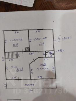 Второй этаж: 3 спальни (11.9+11.9+10.26)
