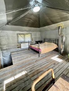 1 этаж: кухня-гостиная 18,1 м2, комната - 7,3 м2, открытая терраса с навесом, туалет.