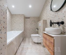 Полы - фактурный керамогранит + ламинат.