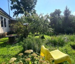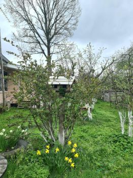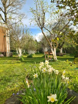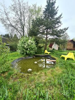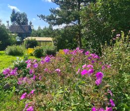 Участок, сухой и возвышенный, настоящий райский уголок. Здесь, среди плодовых деревьев и ягодных кустарников, величаво возвышаются ели и сосны, создавая атмосферу волшебного леса. Парник дарит возможность выращивать собственные овощи, декоративный пруд с Карасями.