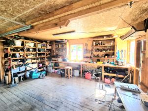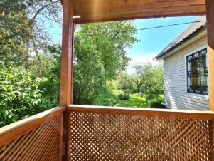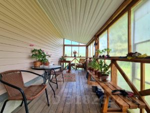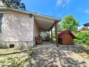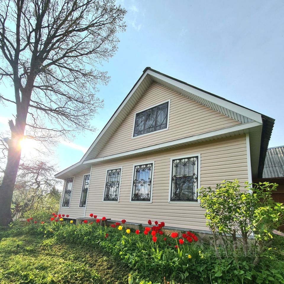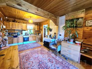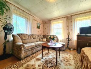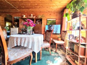 Возведенный из бревна с утеплением и облицованный сайдингом, дом стоит на ленточном фундаменте. Внутри все удобства для современной жизни: вода, канализация, душевая кабина и паровое отопление, обеспечиваемое электро-твердотопливным котлом, электроэнергия - 15 кВт, газ у границы участка.