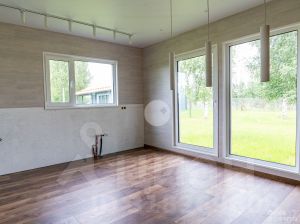 Современный актуальный дизайн дома как снаружи, так и внутри. Полностью укомплектованые санузлы с отделкой из итальянского керамогранита в сочетании с декоративной штукатуркой. На полу в гостиной и комнатах немецкий ламинат. Во всех помещениях светодиодные светильники и электрофурнитура. Уличные светильники также светодиодные. Помещение котельной полностью смонтировано и оборудовано электрокотлом, бойлером, системой ВК и канализации, системой теплых полов.