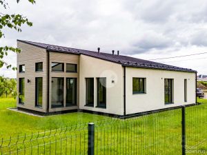 Дом построен по каркасной технологии исключительно из сухой строганной доски по современным технологиям с соблюдением всех необходимых технологических решений. Стропильные фермы собраны на МПЗ заводским способом, в качестве утеплителя использована минеральная вата Rосkwооl, снаружи установлена ветрозащитная плита Веltеrmо шип-паз и деревянная облицовка имитатором бруса в сочетании с оштукатуренными поверхностями по аквапанели. На крыше применена металлическая фальцевая кровля Grаnd Linе со снегозадержанием. Смонтирована система вентиляции. Фундамент - монолитная плита с системой водяного теплого пола. Эффективные панорамные энергосберегающие окна, теплые входные двери в дом, кладовку и котельную.