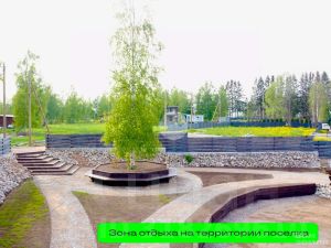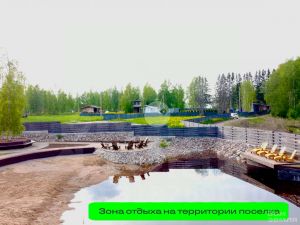 На территории поселка сделан водоем с проточной водой. Ведутся ландшафтные работы. Это будущее место отдыха для жителей поселка.