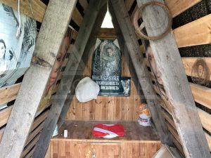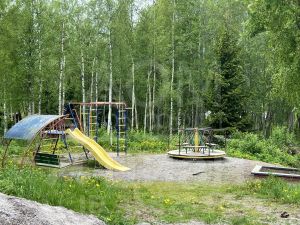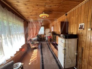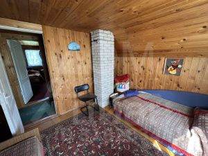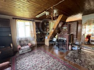 Дом каркасный одноэтажный с мансардой утеплением 150мм., фундамент: лента. На первом этаже большая гостиная с камином и печкой. На мансардном этаже две спальни. Также на участке есть баня с комнатой отдыха, колодце нa участке с технической водой, электричество 5 кВт.
