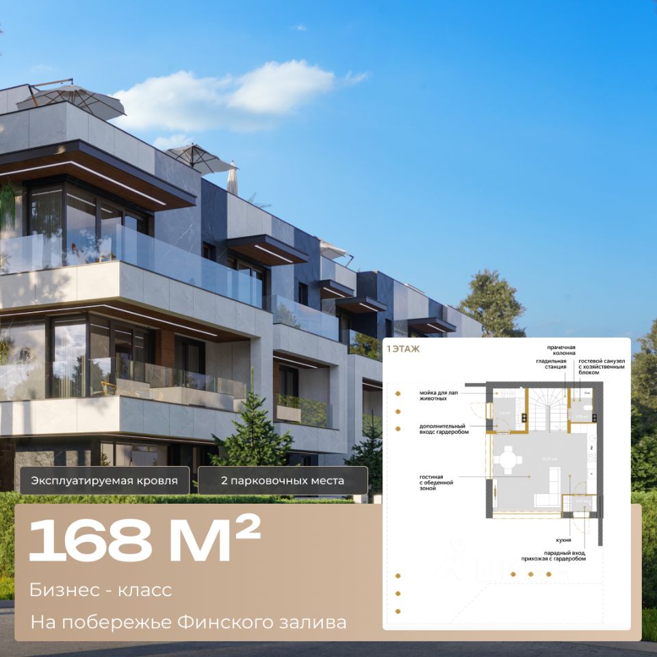 ЖК Северная Лисица Пространство, где семья, природа и смысл формируют образ жизни нового времени. ЖК бизнес-класса в Приморском районе Санкт-Петербурга ЭКСПЛУАТИРУЕМАЯ КРОВЛЯ В ПОДАРОК! Резиденции от 168 до 274 м² | Сдача — IV кв. 2025 | 214-ФЗ В ритме мегаполиса особенно остро ощущается потребность в тишине, личном пространстве и близости природы. "Северная Лисица" — уникальный камерный жилой комплекс бизнес-класса в Лисьем Носу, курортной зоне Санкт-Петербурга. Это не просто архитектура — это среда, где дом вписан в природу, а форма подчёркивает содержание. Здесь не нужно выбирать между природой и жизнью в городе, между уединением и продуктивностью — всё, что вам необходимо, в едином пространстве новой жизни. Резиденции, в которых всё продумано: Простор: от 168 до 274 м², гибкие планировки для отдыха и комфортной удаленной работы. Каждый этаж - отдельное пространство, которое вы наполняете функциональными решениями. Террасы и эксплуатируемая кровля - уникальная возможность ощутить безмятежность морского отдыха дома, в Северной Столице. Больше воздуха, больше света, больше жизни. Мастер-спальня с отдельным санузлом, гардеробной и кабинетом/бьюти-зоной. 4 санузла — максимум комфорта для семьи. Панорамные окна, потолки от 3 м, гардеробные и ванные с окнами. Собственный участок — ваш личный сад, зона отдыха, пространство для детей. Природа — как часть жизни, а не пейзаж за окном: Всего 15 минут до песчаного берега Финского залива. Эко-тропа в сосновом лесу — от дома до воды без машин и шума. Воздух, тишина, лес, целебный микроклимат — отдых каждый день. Идеальное сочетание уединения и доступности: До КАД и ЗСД — 4 км, До центра Петербурга — 1015 минут на автомобиле. В пешей доступности — всё необходимое: школы, спорт, медицина.