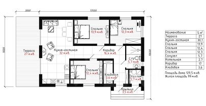 Санузел 5,7 м². Кладовая 3,6 м². Котельная с отдельным входом 2,7 м².