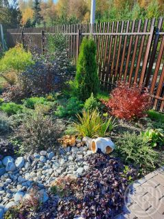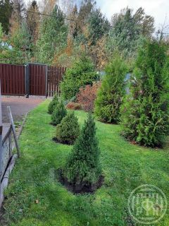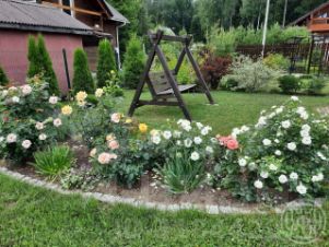 Участок 10 соток, ровный без перепадов. Полностью разработан, выполнен ландшафтный дизайн. Плодоносящий сад - яблони, сливы, вишня, кусты малины, смородина красная, черная, крыжовник, клубника. Совсем небольшая зона огорода, в основном газон и декоративные деревья. Имеется мангальная зона.