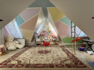 - на 2-м этаже: мастер-спальня с собственной ванной комнатой и выходом на балкон, гостевая комната и детская,