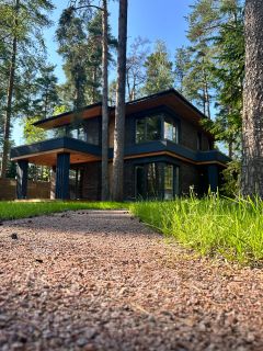 - Участок: 12 соток с вековыми соснами, удобный заезд, современный забор с откатными воротами, подготовленное озеленение, дорожки и парковка из щебня.