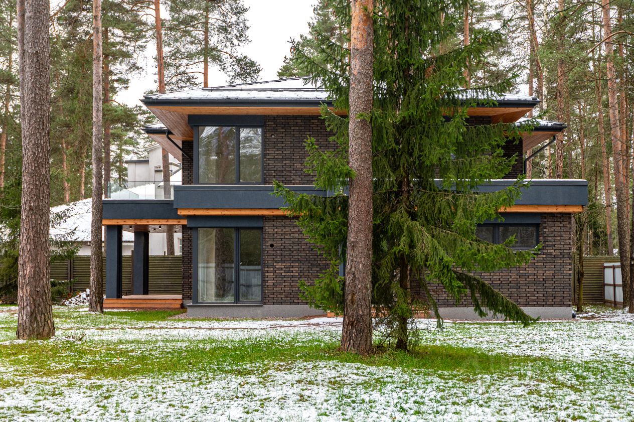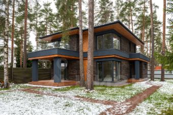 - Фасад: Элегантное сочетание натурального планкена, декоративной штукатурки и клинкерного кирпича Faber Jar "Охтинский".