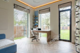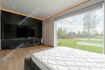 На данный момент в доме , в детской зоне, расположены три спальные комнаты . В каждой комнате рабочие столы и двух-ярусные кровати ( наверху- игровые ). Во всех комнатах большие витражные окна с автоматическим подъемом штор. В родительской зоне - большая спальная комната , отдельная гардеробная зона , санузел и бытовая комната для обслуживания дома.