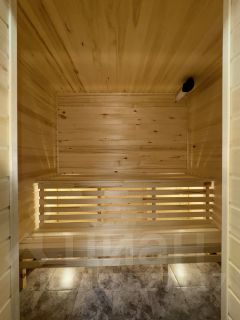 1 этаж-просторная кухня-столовая , прихожая, с/узел , сауна, душ. В кухне-столовой установлен кухонный гарнитур , газ.плита, холодильник,стол и стулья, мягкий уголок, ТВ. В санузле установлена вся сантехника , стиральная машина. 2 этаж-изолированные спальни(2).