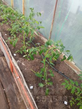 - большая теплица 15*2,5м с капельным поливом Жук (посажены помидоры, огурцы, виноград (перцы и баклажаны на грядках на улице),
