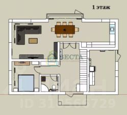 На 1 этаже расположены кухня-гостиная, холл, гостевая, котельная и санузел.