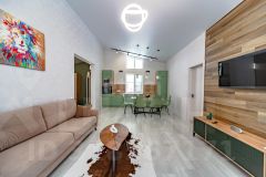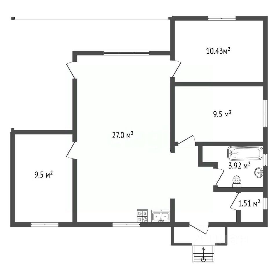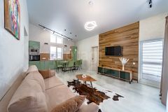 Дом одноэтажный, просторная прихожая, кухня-гостиная и 3 спальных комнаты. Санузел выложен керамической плиткой, установлена стиральная машина. По всему дому натяжные потолки. Пол - кварцвинил.