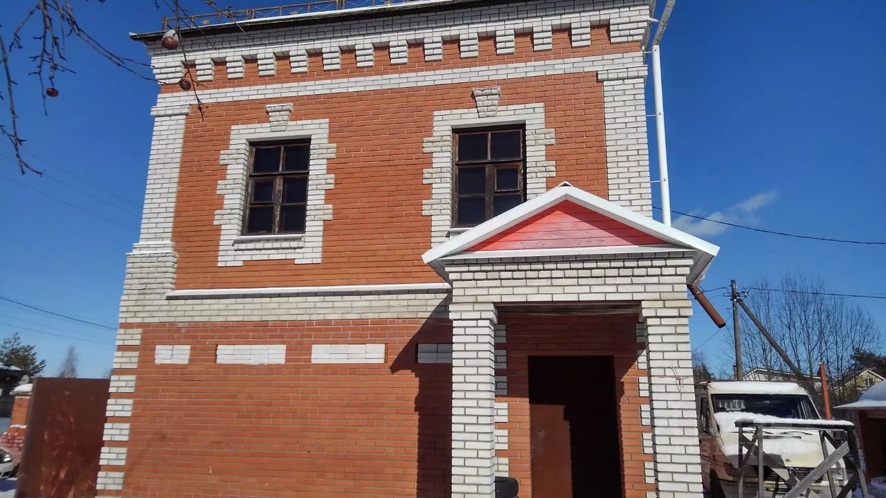 Дом по факту трехэтажный (третий этаж - мансардный), кирпичный, основание - монолитная плита, крыша вальцевая (оцинкованные листы), утепленная полиуретаном. Цокольный этаж монолитно-кирпичный. Железобетонные перекрытия между этажами. Дом без внутренней отделки, в наличии некоторые материалы: гипсокартон, облицовочная доска. Проведено электричество (15квт), газ, установлен счетчик. Водоснабжение - скважина, трубопровод подведен к дому. Дом очень добротный, построен  душой и старанием.