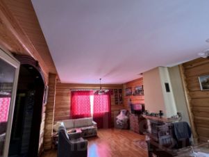 -Дом построен из бревна(лафет), с трех сторон утеплен. Есть все коммуникации: эл-во 15 кВт, централизованное водоснабжение, отопление газовый котел, канализация септик.
