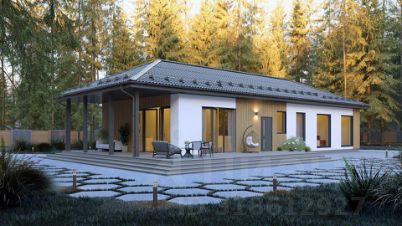 • Современный одноэтажный дом в стиле минимализм — спроектирован для комфортной жизни семьи с детьми
