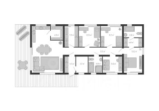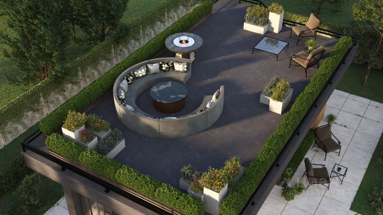 • Уютная терраса по периметру, просторная кухня-гостиная, 3 спальни и кабинет — здесь есть всё, чтобы жить, работать и отдыхать.