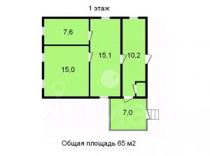 В доме, площадью 65 кв.м., три комнаты, кухня, сан/узел. К дому пристроена уютная веранда.