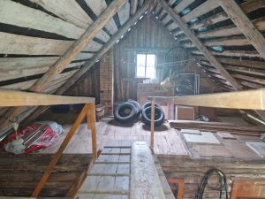 Дом построен из бревна в 1960 году. Фундамент - ленточный, кровля - шифер, окна - металлопластиковые стеклопакеты.