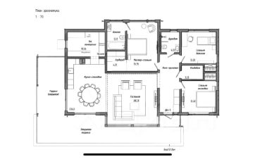 Предлагаем вашему вниманию стильный одноэтажный дом, построенный по финской технологии. В доме предусмотрена закрытая веранда, навес для автомобиля и элегантные французские окна, которые создают атмосферу уюта и наполняют пространство светом.
