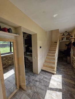 Отопление - теплый водяной пол. Газовый котел (дистанционное управление через Wi-Fi). На полу плитка и качественный ламинат. Запасной электрический котел. Камин.