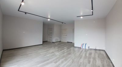 Площадь составляет 90 кв м. Дом из газобетона ЛСР 300 мм, на ж/б плите 250мм, крыша мягкая кровля с утеплением 200мм, фасад облицовачный кирпич с утеплением 50мм., окна форте двухкамерные 70мм. во всем доме теплые полы, сделана разводка ГВС, ХВС. в комнатах ламинат, санузел в плитке, на стенах поклеены обои! заезжай и живи :) скважина заведена в дом, септик .Электричество 15 квт.