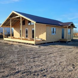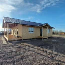 Продаётся новый одноэтажный дом без внутренней отделки с панорамными окнами и террасой - 140 м2, расположенный на участке 15 соток в деревне Гостилицы Ломоносовского района Ленинградской области в 17 км от КАД, 51 км от Санкт-Петербурга (метро пр. Ветеранов) и 26 км от Петергофа и Ломоносова на автомобиле.