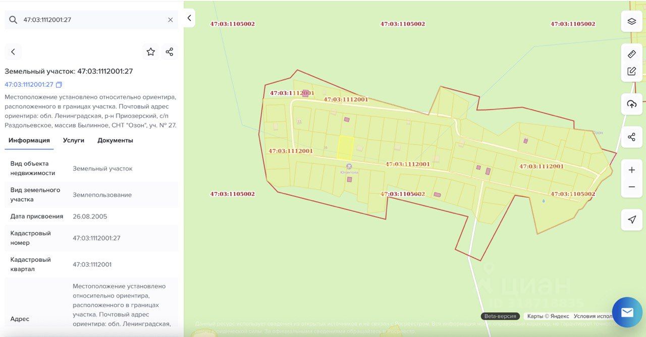 Кадастровый номер 47:03:1112001:27. Есть Электричество в Садоводстве, необходимо оформить на участок.