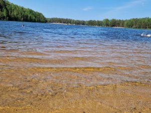 -От участка ехать ровно 500 метров до сьезда на Коркинское озеро пляж !