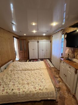 На просторном зеленом участке - отдельно стоящая баня, летняя кухня, мангальная зона с крытой пристройкой для посиделок, детская площадка, крытые места для машины и других нужд, хоз постройки, парник, фруктовые деревья- яблоки 10 сортов, айва, груша 5 сортов, слива , вишня, черешня, фундук, цветы, малина 5 сортов, смородина 4 сорта, крыжовник.